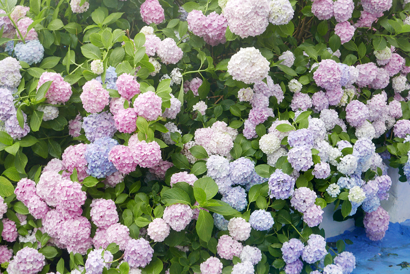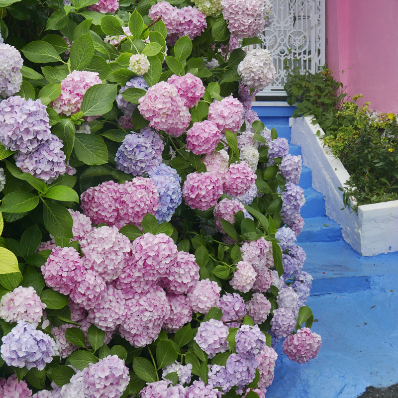 원래 엄청난 웨이팅으로 각오해야 하는 명소인데 평일 오전이고 비가 내릴 것 같은 흐린 날씨라서 한 팀만 사진을 찍고 있었다. 알록달록 여러가지 색깔의 수국이 잘 가꾸어져 있어서 정말 예뻤다.